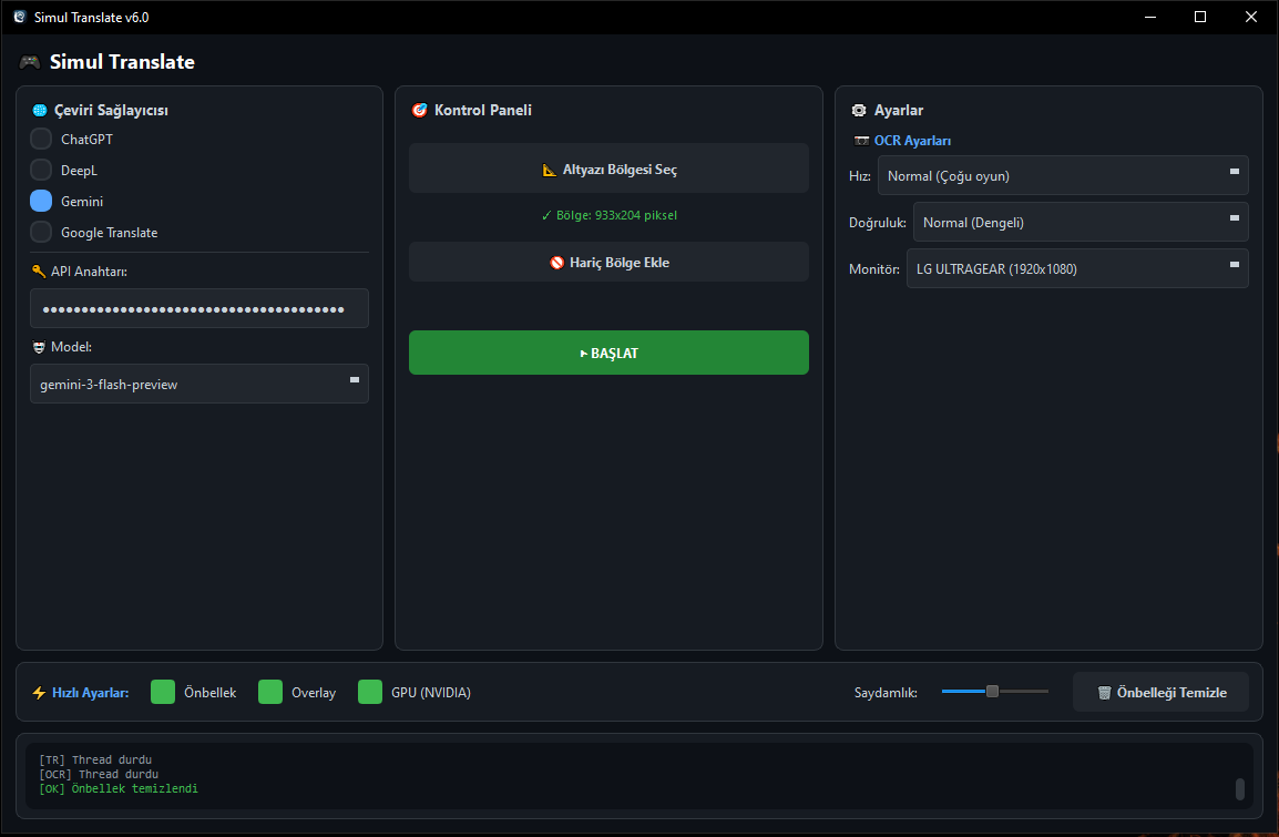 Oyuncular için geliştirilmiş yapay zeka destekli çeviri aracı. Oyunlardaki diyalogları, görevleri ve menüleri anında Türkçeye çevirin.